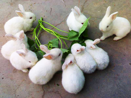 肉兔,又称菜兔。肉兔品种很多,按体型大致可分为大、中、小三种类型。体重5千克以上为大型兔;3~5千克为中型兔;3千克以下为小型兔。据测定,肉兔瘦肉率高达70%。肉中蛋白质达21%;赖氨酸、磷脂、钙、维生索的含量也很高,特别适宜老人、小孩食用。在国外,兔肉被誉为 “美容食品”,需求量不断增加。